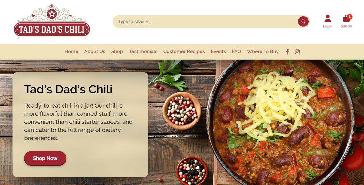 Tad's Dad's Chili | Ready to Eat Chili |