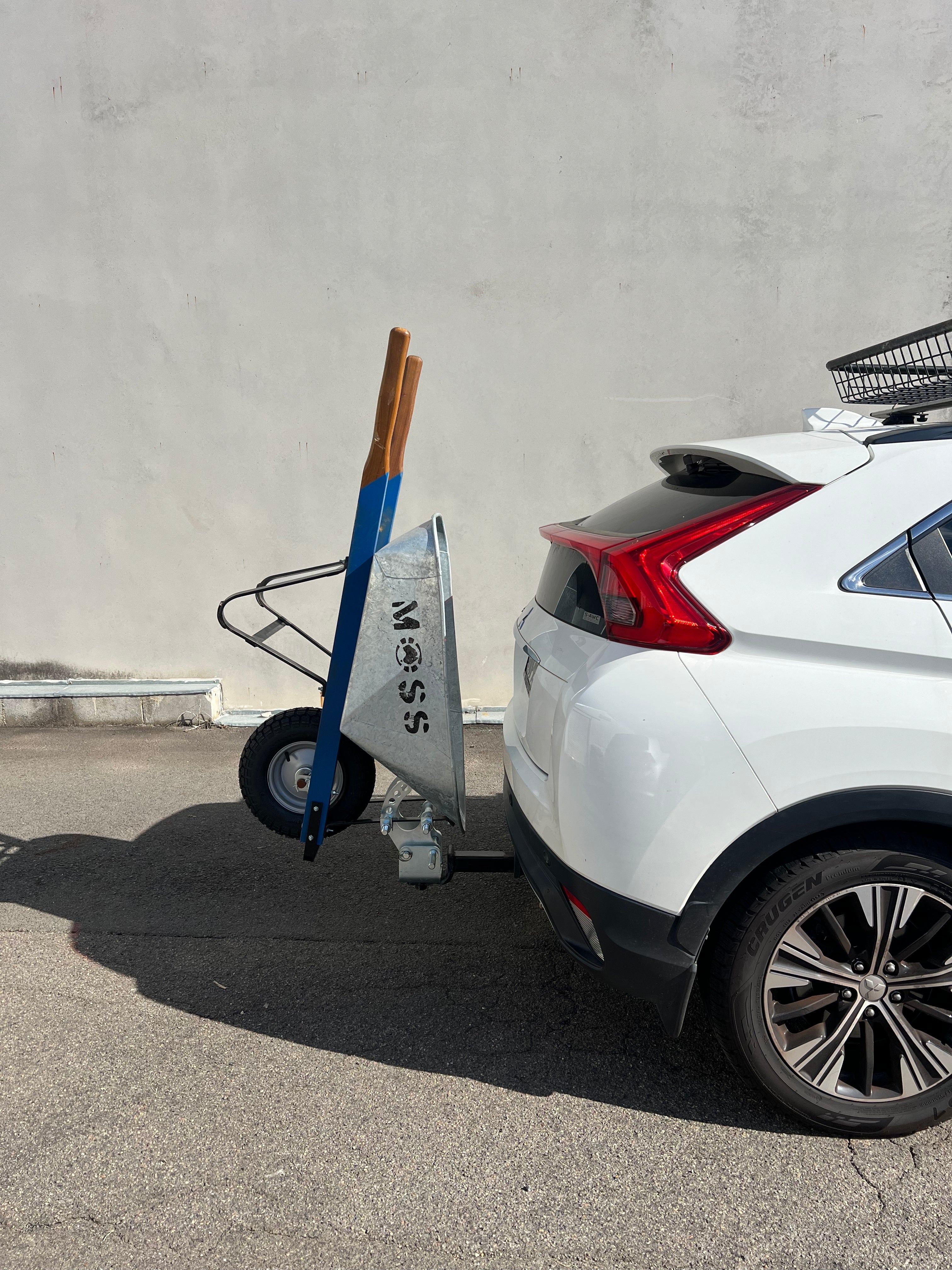 BarrowBar the tow bar attachment to carry your wheelbarrow upright! |
